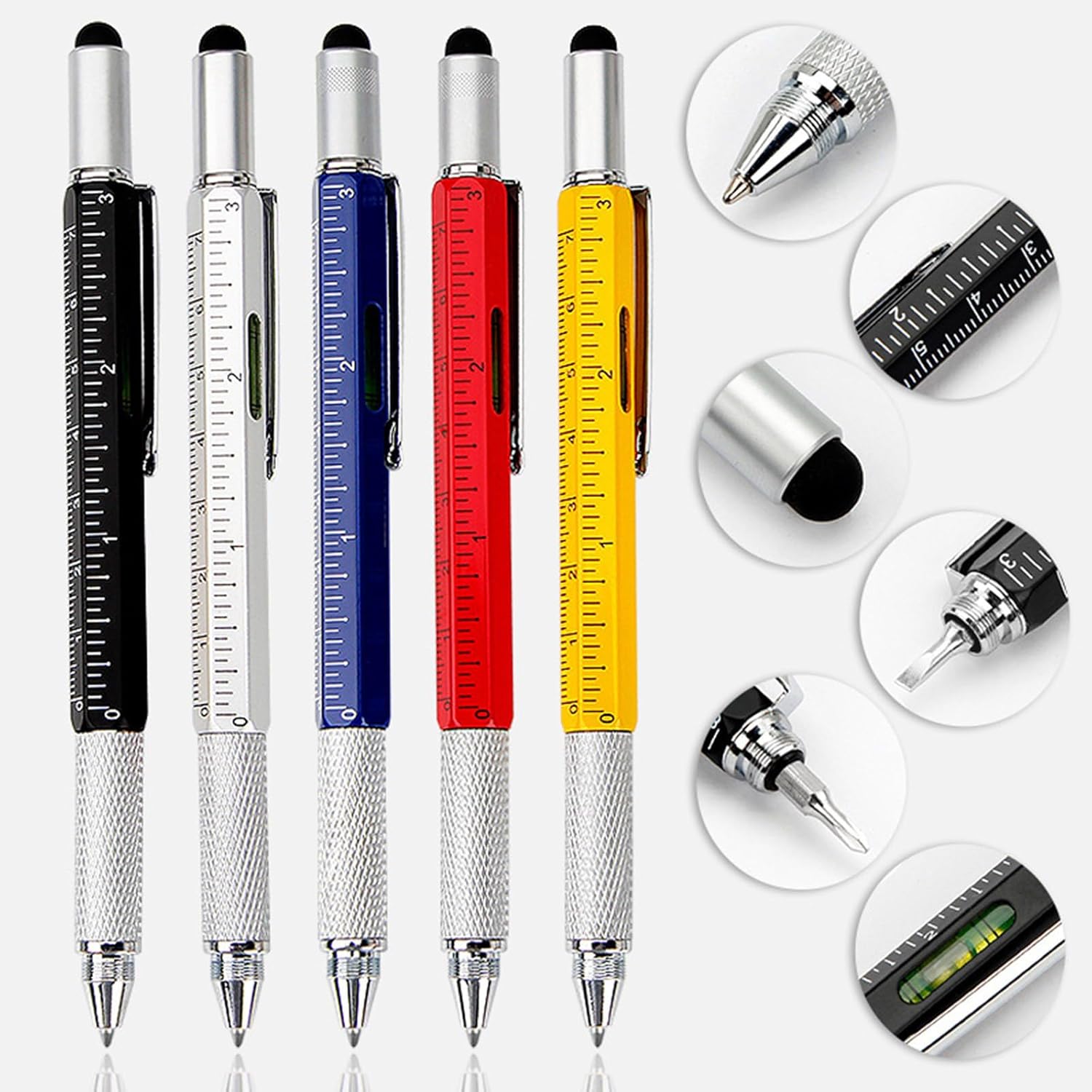 Crafted from metal, light in weight, break resistant, portable and easy to use. Each multitool pen gadgets contains 6 functions: ballpoint pen, levels gauge, touching screen pen, scale ruler, flat head screwdriver, crossed head screwdriver