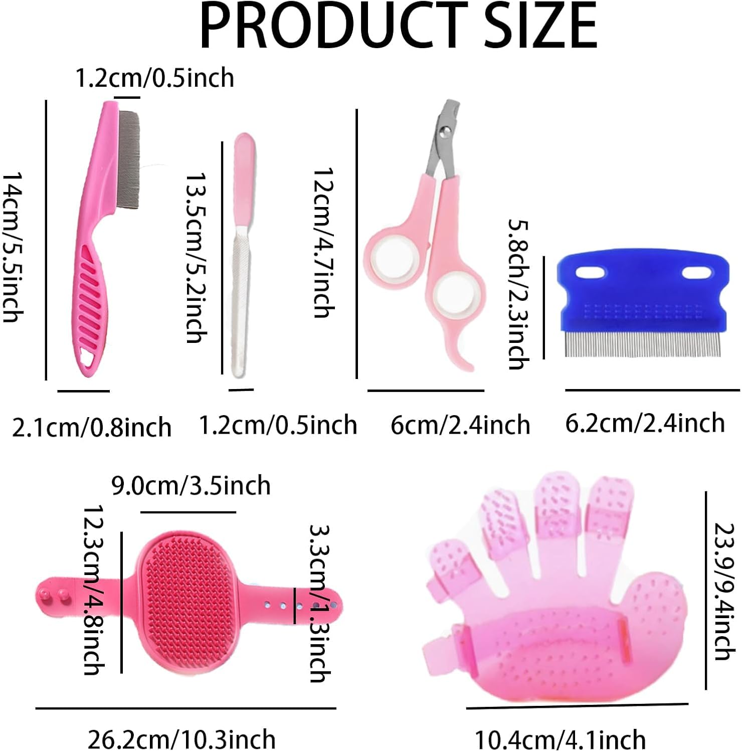 【Package Included】: 1x nail clipper, 1x nail trimmer, 1x comb with long handle, 1x comb with short handle, 1x pet hair removal comb and 1x pet shampoo bath brush