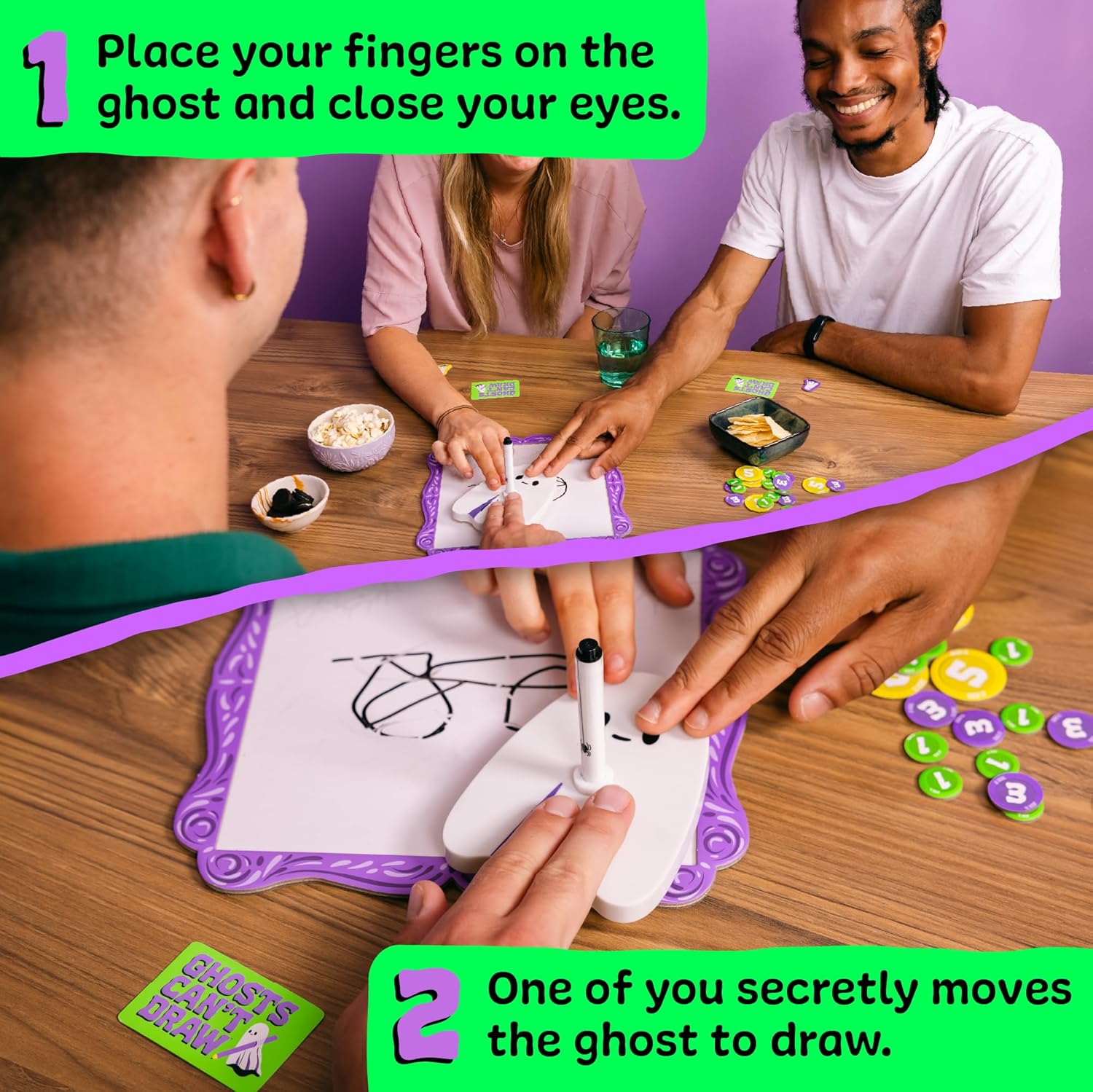 SPOOKY FUN FOR EVERYONE: In this Halloween -y board game, the ghost does the doodling and you do the guessing!