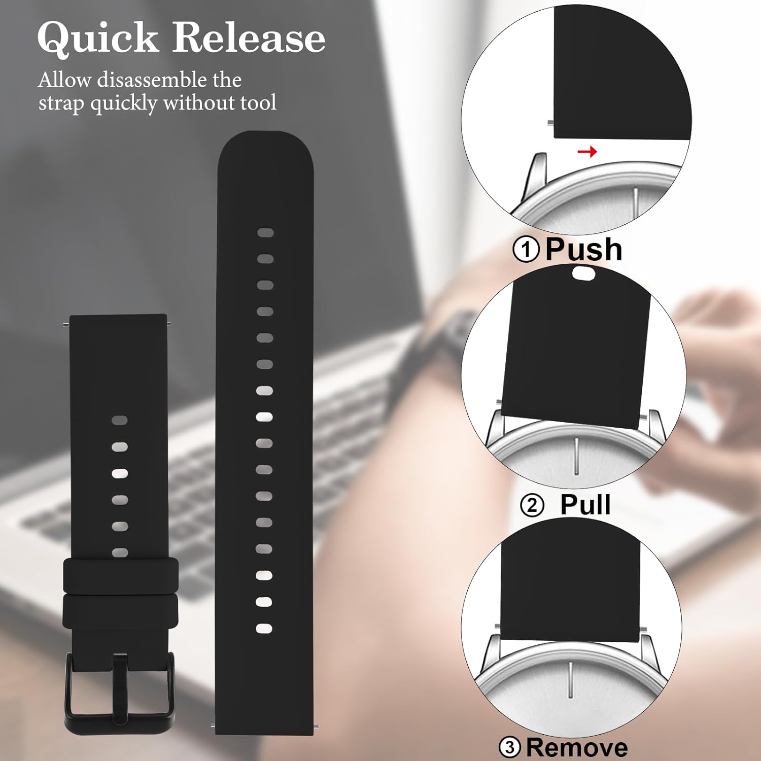 BOHUIZ Silicone Watch Bands, Quick Release Waterproof Rubber Replacement Straps with Silver Plated Stainless Steel Buckle Compatible with Smart Watch Sport Watch for Men