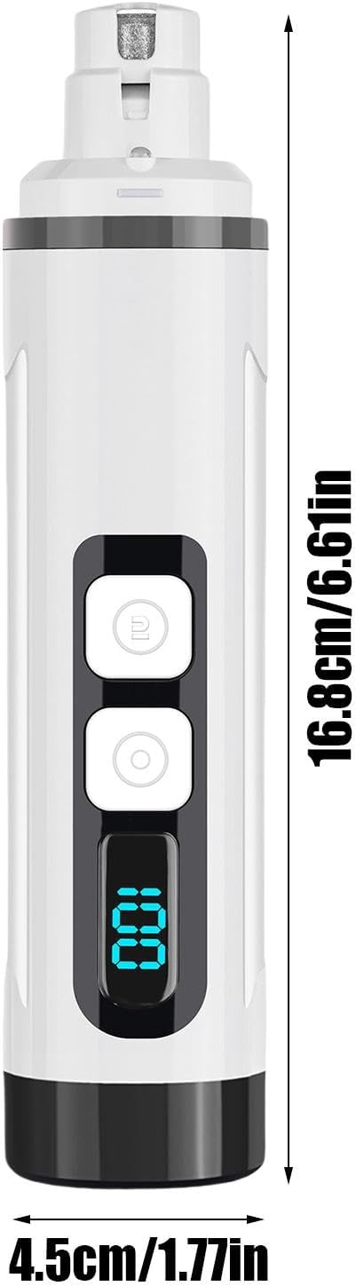 Digital Display for Precision: Equipped with a digital display, this nail grinder allows you to monitor battery life and adjust the speed, ensuring you always have the right amount of power for your pet’s nails