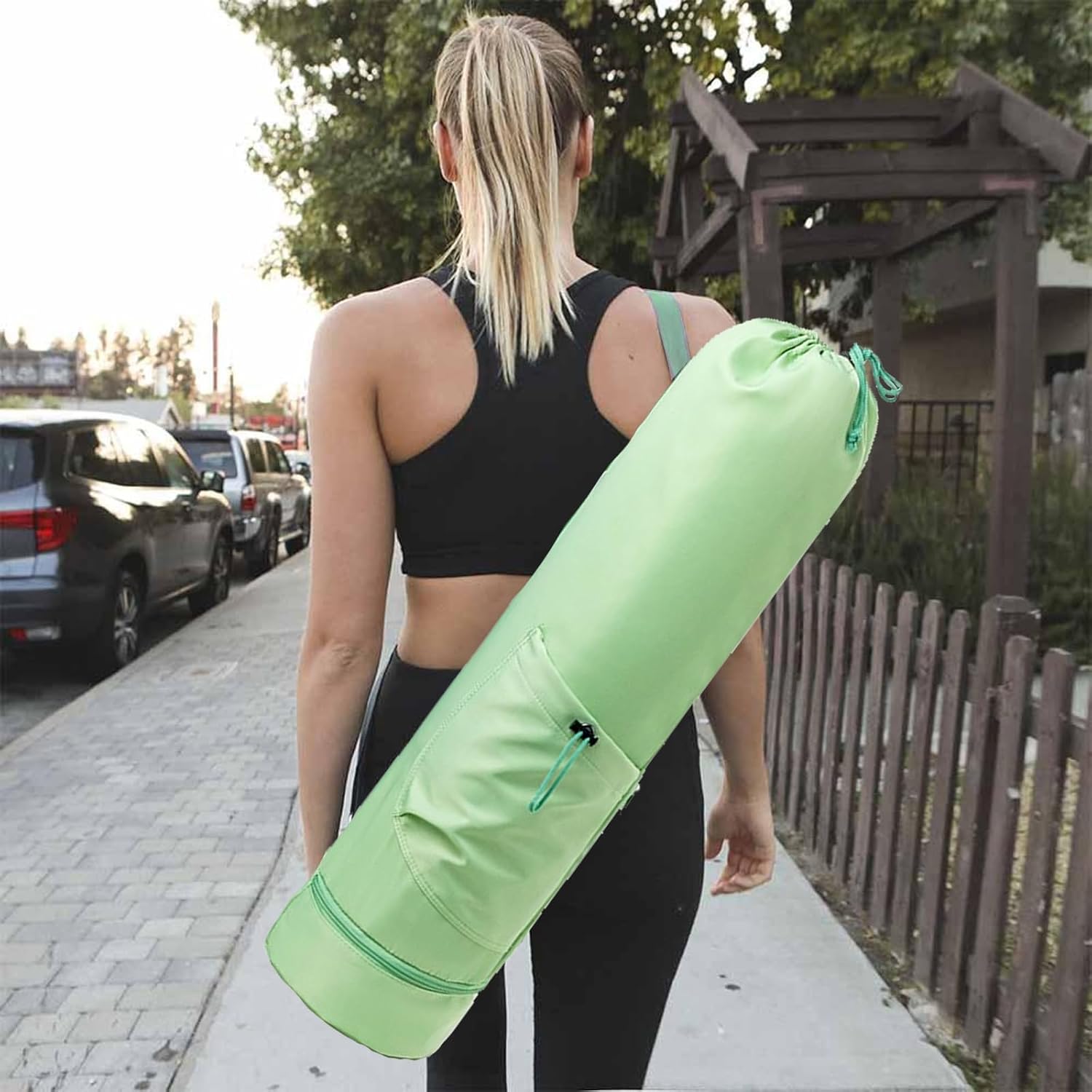 Spacious Yoga Mat Bag with Drawstring Closure: Measuring 78x19cm, this yoga bag features a large main pocket that accommodates most yoga mats. The drawstring closure makes it easy to secure and access your mat, making it a convenient yoga mat carry bag for daily use.