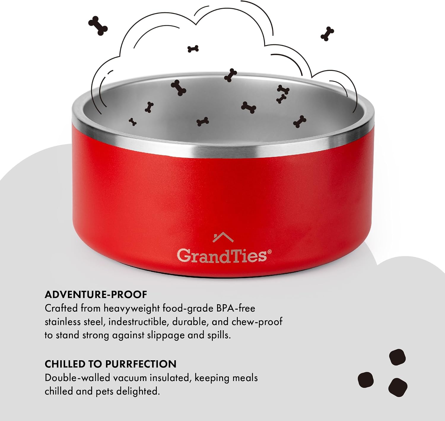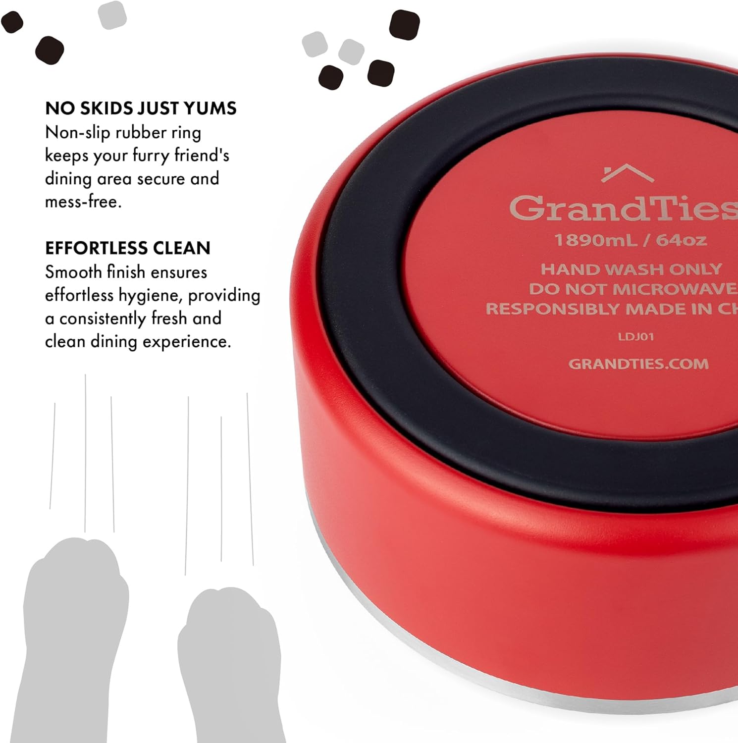 GrandTies Stainless Steel Dog Bowl | Engraved Reusable BPA-Free Insulated Pet Feeder | Large Heavy Duty Non Skid Spill Proof Dish | Outdoor Water Bowl (64oz, Cranberry)
