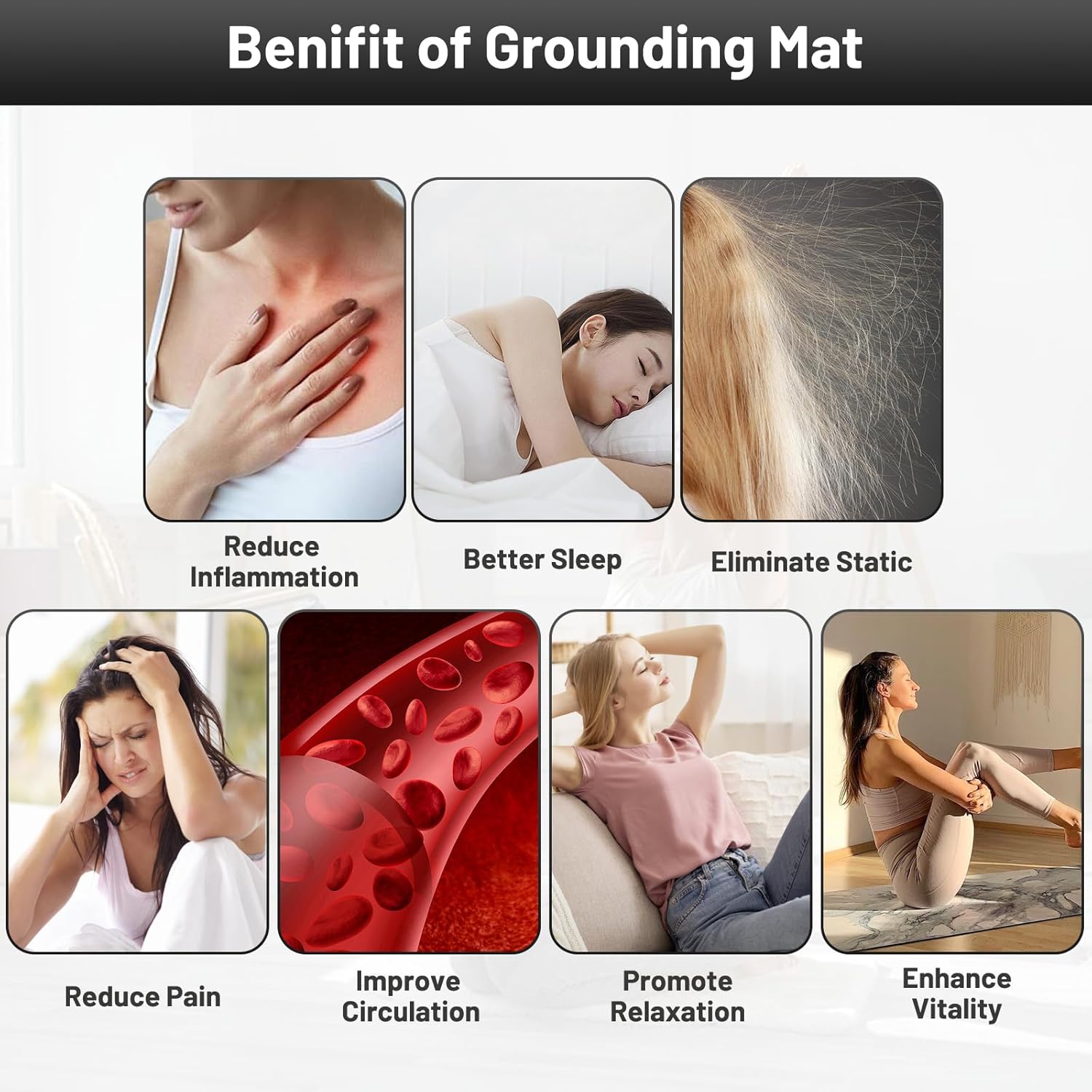 【Grounding Benefits】 Using this grounding mat, you can experience the natural benefits of connecting with the Earth, including stress relief, improved blood circulation, accelerated wound healing, reduced inflammation, enhanced sleep quality, muscle tension and headache relief, as well as increased focus and vitality during the day.