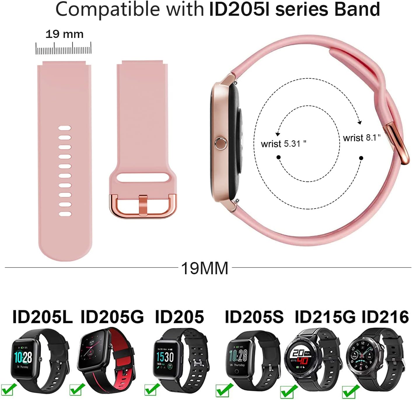 Issinlky Veryfitpro ID 205L band, 19mm band Silicone band for GRV FC1 IDW 15 ID205S ID205G ID215G ID216 GRVID205L YM205L Uwatch3 Ufit GT BV205L TE021 SW020 SW021 SW023 Smartwatch