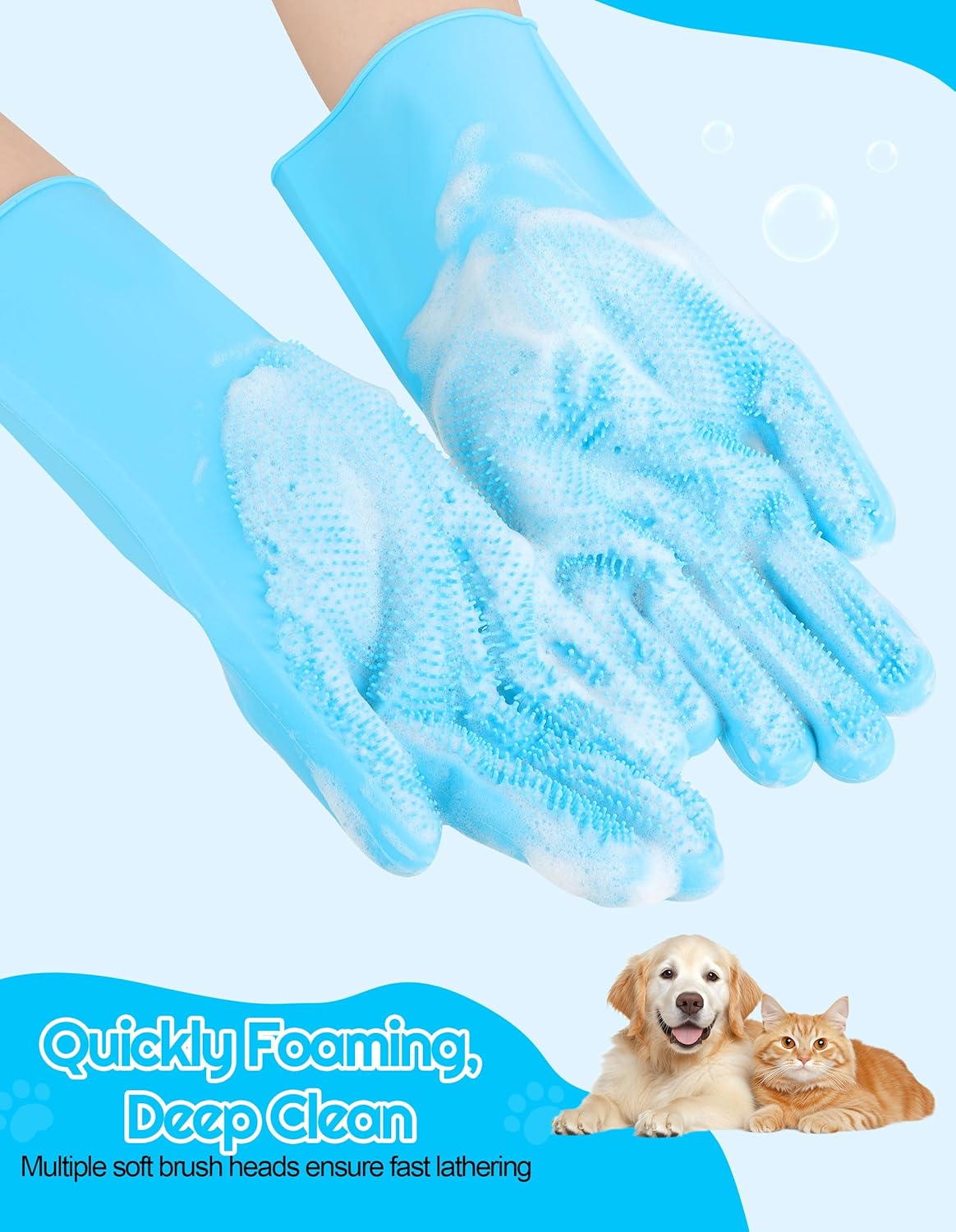 Deep Cleaning and Fast Foam: There are multiple soft brush heads on the pet cleaning gloves, and the fine brush head evenly distributes shampoo, maximizes foam and saves 20% bathing gel compared to using it directly, while deep cleansing of the pet’s skin, comprehensive care for the health of pets.