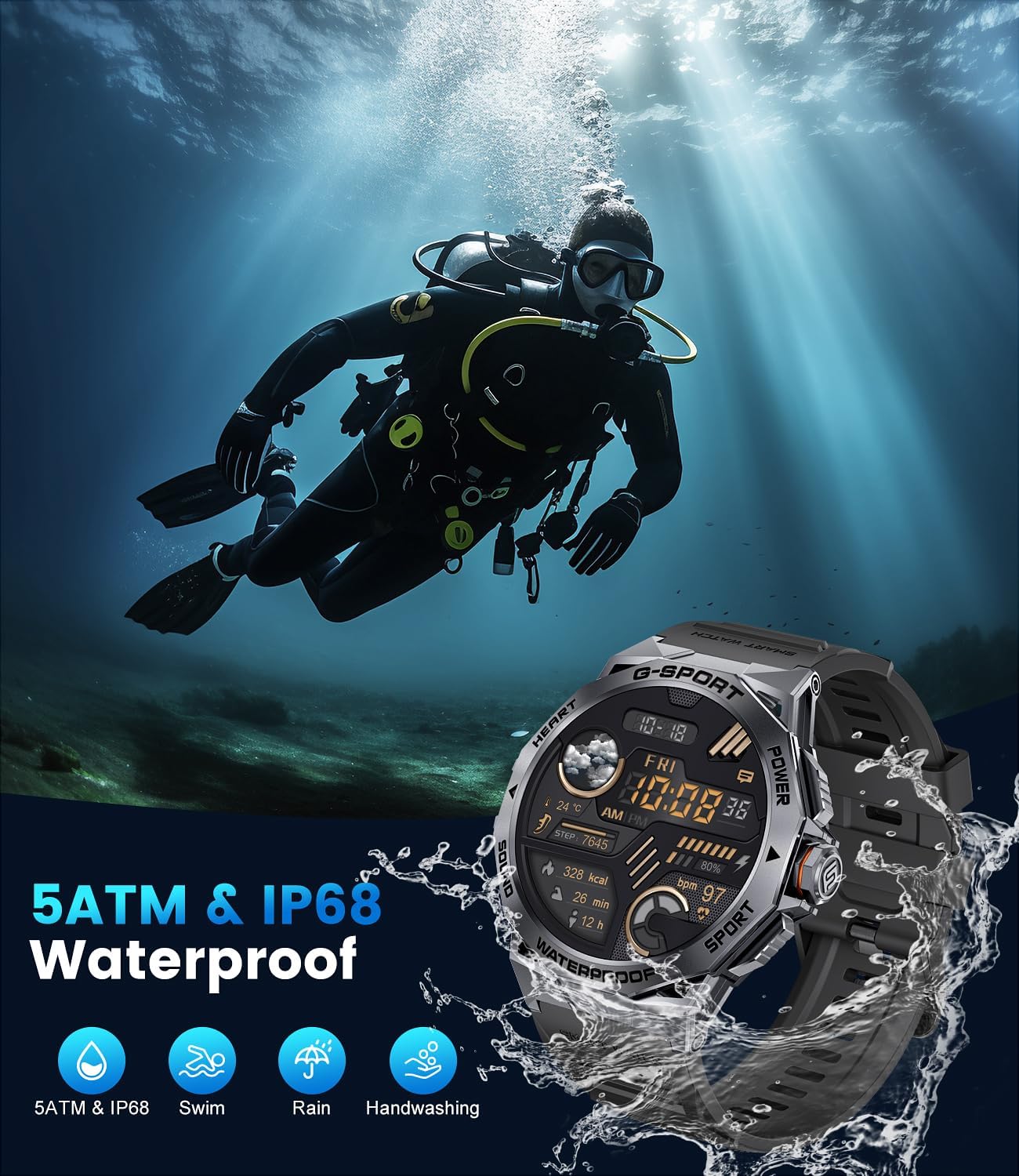 Embrace the future of display technology with our smart watch for men featuring Amoled Display, a significant upgrade from traditional LCD screens. Unlike LCD screens that require a backlight to illuminate the pixels, the Amoled Display individually lights up each pixel, resulting in richer colors, deeper blacks, and higher contrast levels. This means you’ll enjoy vivid and true-to-life visuals with Amoled Display, whether you’re outdoors under bright sunlight or indoors in low light conditions.The TC4 titanium alloy monocoque dual-metal case ensure longevity and resilience.The indestructible military smart watches typically employ internal shock-resistant technology to effectively minimize the impact of external vibrations on the internal components of the watch, preventing any dislodgement or damage to the parts,making it suitable for both formal occasions and rugged escapades