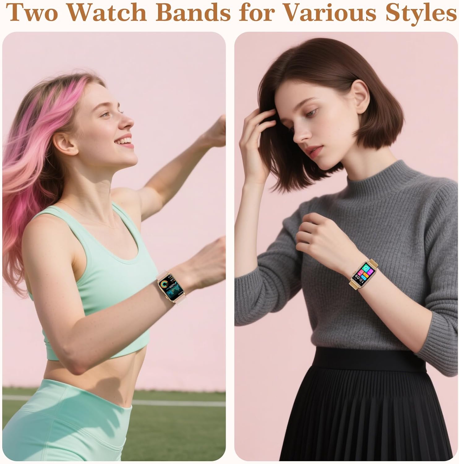 🎁【2 straps, 2 styles】This women’s sports watch comes with 2 straps: a classic gold stainless steel strap and a casual pink silicone strap. You can freely switch between classic and sporty styles to inspire your passion for fashion.