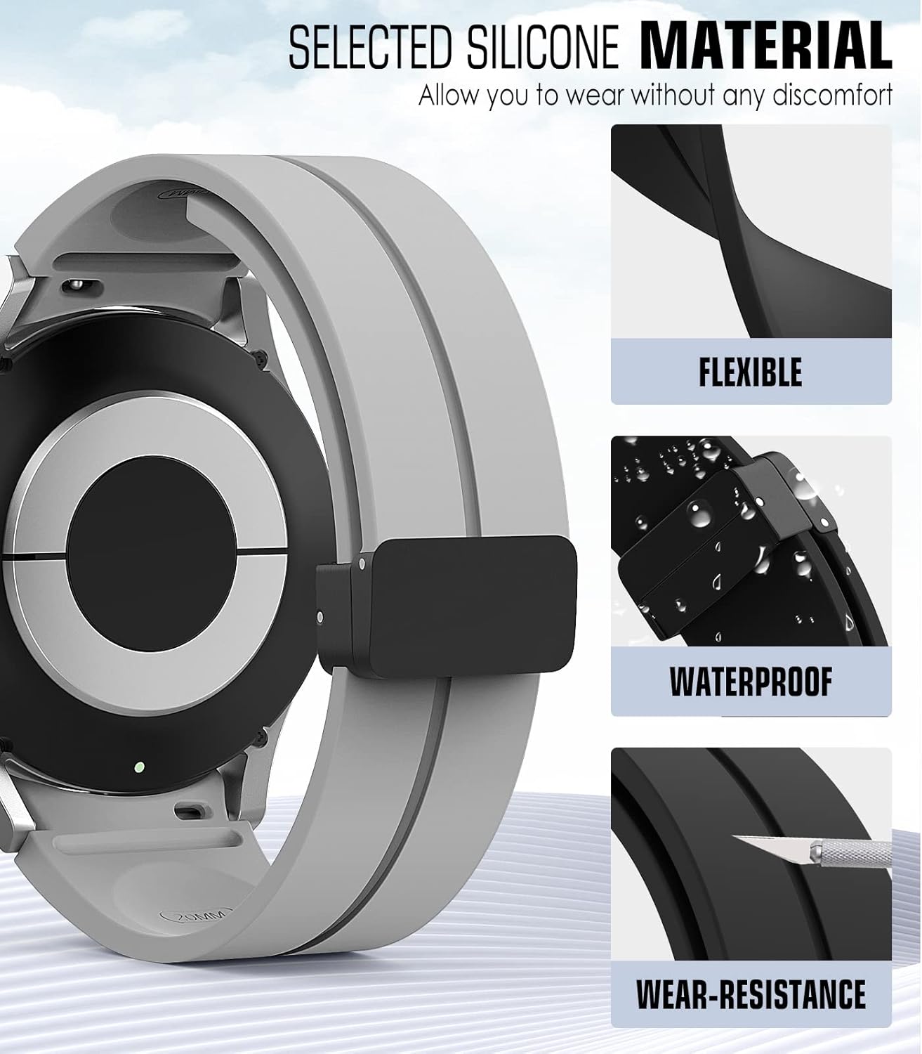 【Folding Magnetic Clasp】- This Galaxy Watch 7 sport strap is designed with a magnetic metal clasp that makes it easy to put on or take off. The clasp slides along the strap for a perfect fit on your wrist. The magnet is strong enough to hold the strap in place.