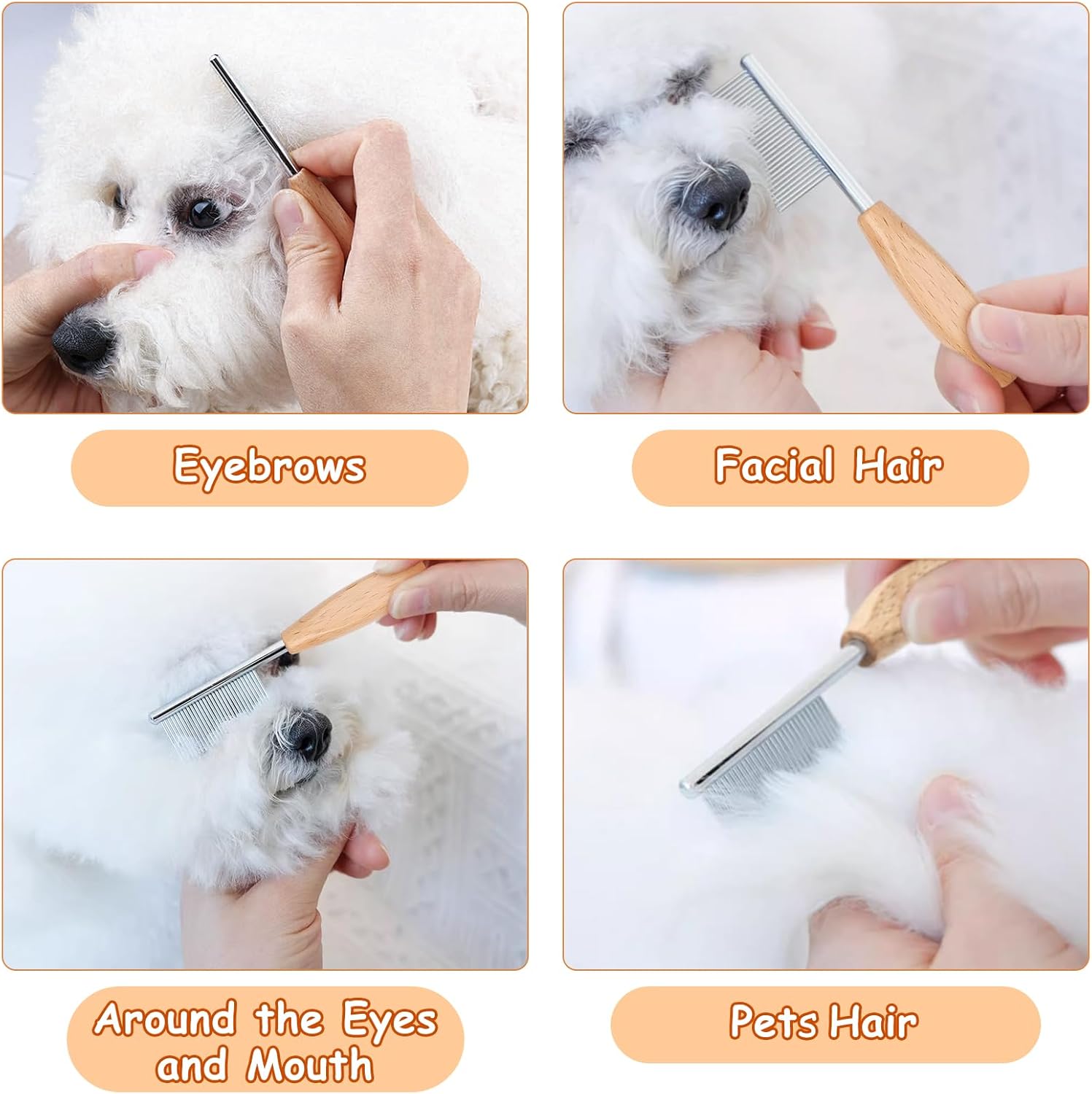 Pet Facial Comb: This cat flea comb is tightly arranged, allowing for easy grooming of pet eyebrows, facial hair, and hair, as well as easy removal of food debris and dirt around the eyes and mouth. And effectively keeping pets tidy, healthy, and energetic