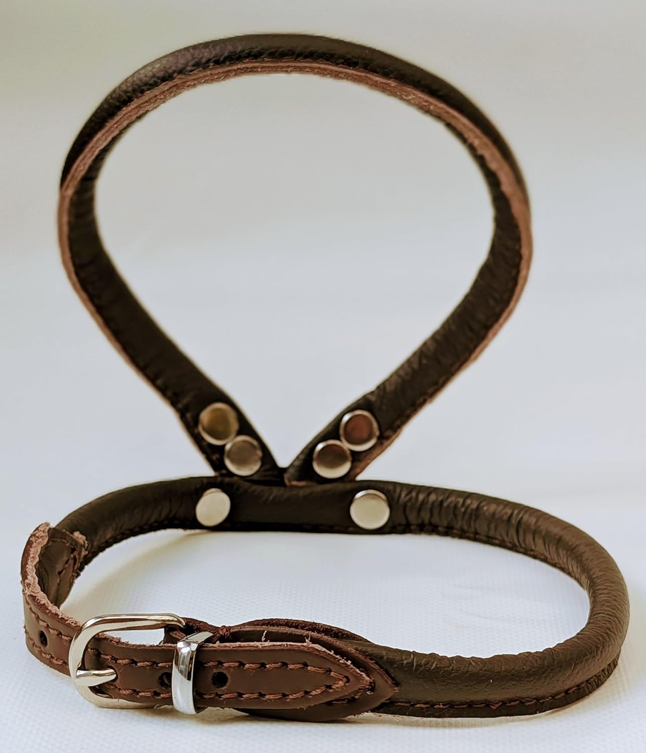 Real SOFT ROLLED LEATHER DOG PUPPY HARNESS Handmade (BROWN, SMALL girth size min 14″ to max 15.5″)