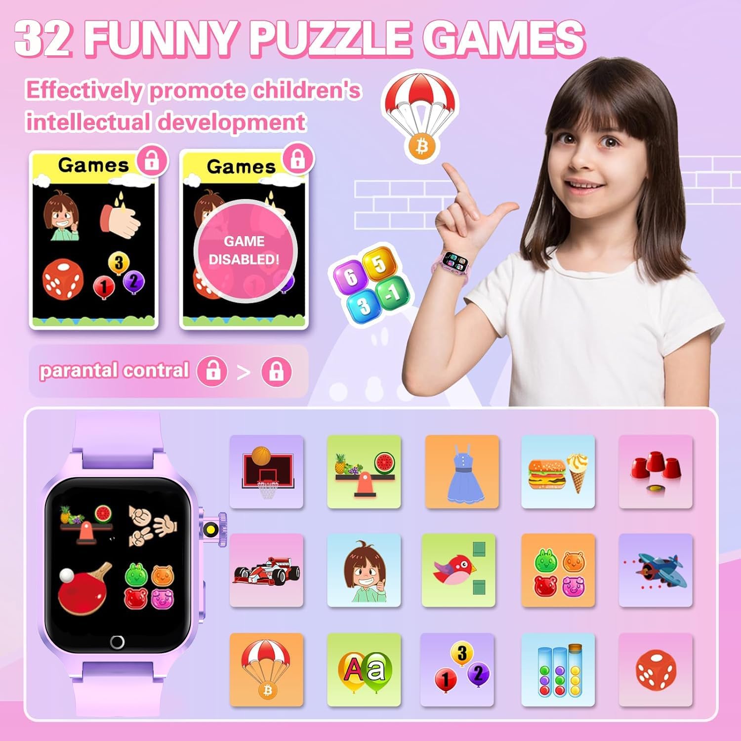 【32 Games】As a fun kids smart watch, there are 32 educational learning games to choose from. These games are more playable and suitable for children of multiple ages. It can effectively exercise your child’s logical thinking ability, reaction ability and hand-eye coordination. Let your child grow while playing with this kids smart watch, and it has habit tracking and parental control functions that traditional watches don’t have.