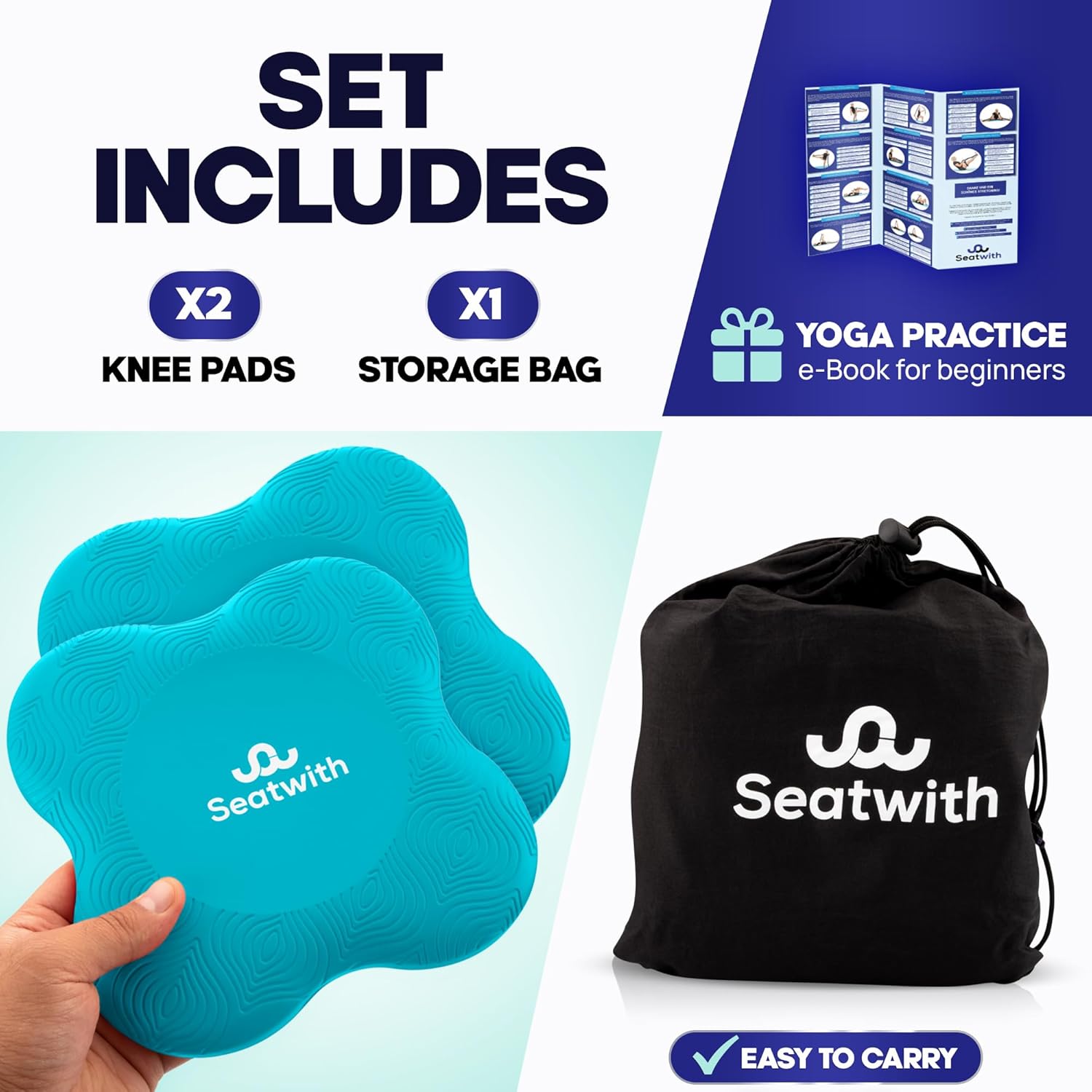 Seatwith Yoga Knee Pads (Pack of 2) – Pilates Cushion with Transport Bag + Training PDF Instructions – Maximum Relief & Support for The Knees, Wrists & Elbows – 8 x 8 inches