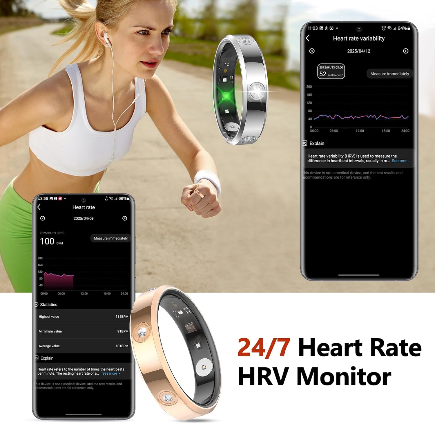Powerful App: The ring synchronizes the monitored data to your phone by app, whether you’re an Android or iOS user, this app can adapt to your system, providing detailed charts to help you monitor your activity progress and health status.