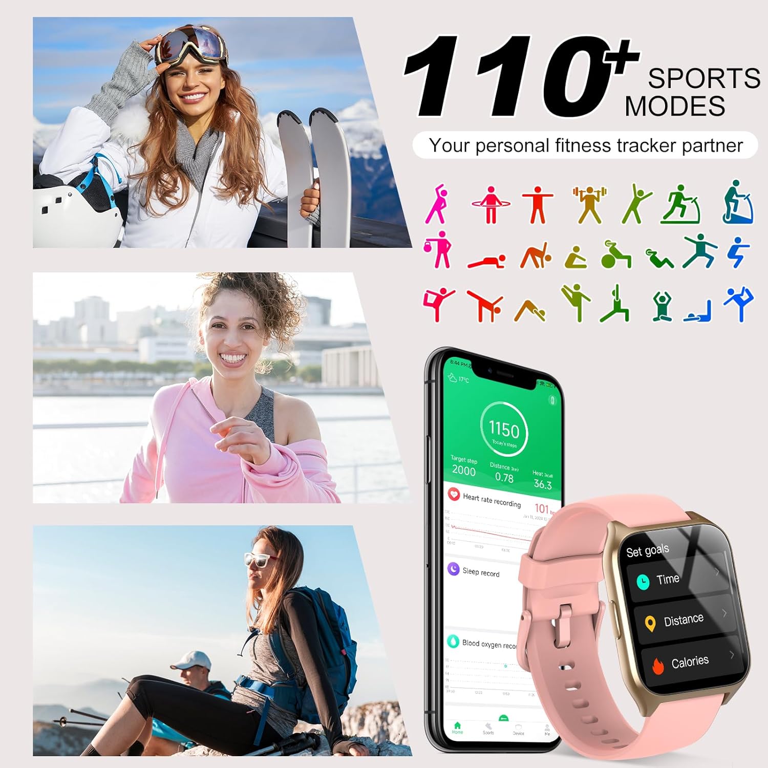 110+ Sports Modes and IP68 Waterproof: The fitness watch for women offers 110+ sports modes to meet your needs in various exercise scenarios. Whether you’re running, practicing yoga, or engaging in team sports, the activity trackers accurately tracks your data, including steps, activity duration, calories burned, and distance. With an IP68 waterproof rating, it effectively protects against water splashes, rain, and sweat, allowing you to use it with confidence and take on any workout intensity.