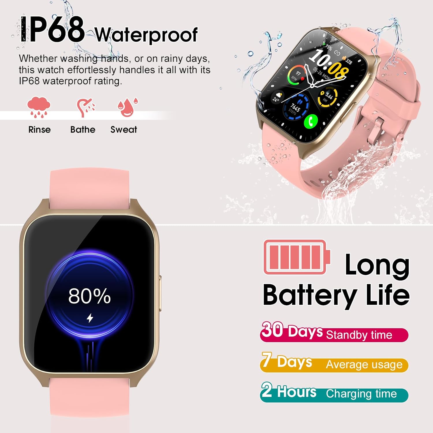 Smart Watch for Women Answer/Make Calls, 1.85″ Touch Screen Fitness Watch with Heart Rate/Sleep Monitor/Step Counter, 110+ Sports Activity Tracker, IP68 Waterproof Smartwatch for Android/iOS Pink
