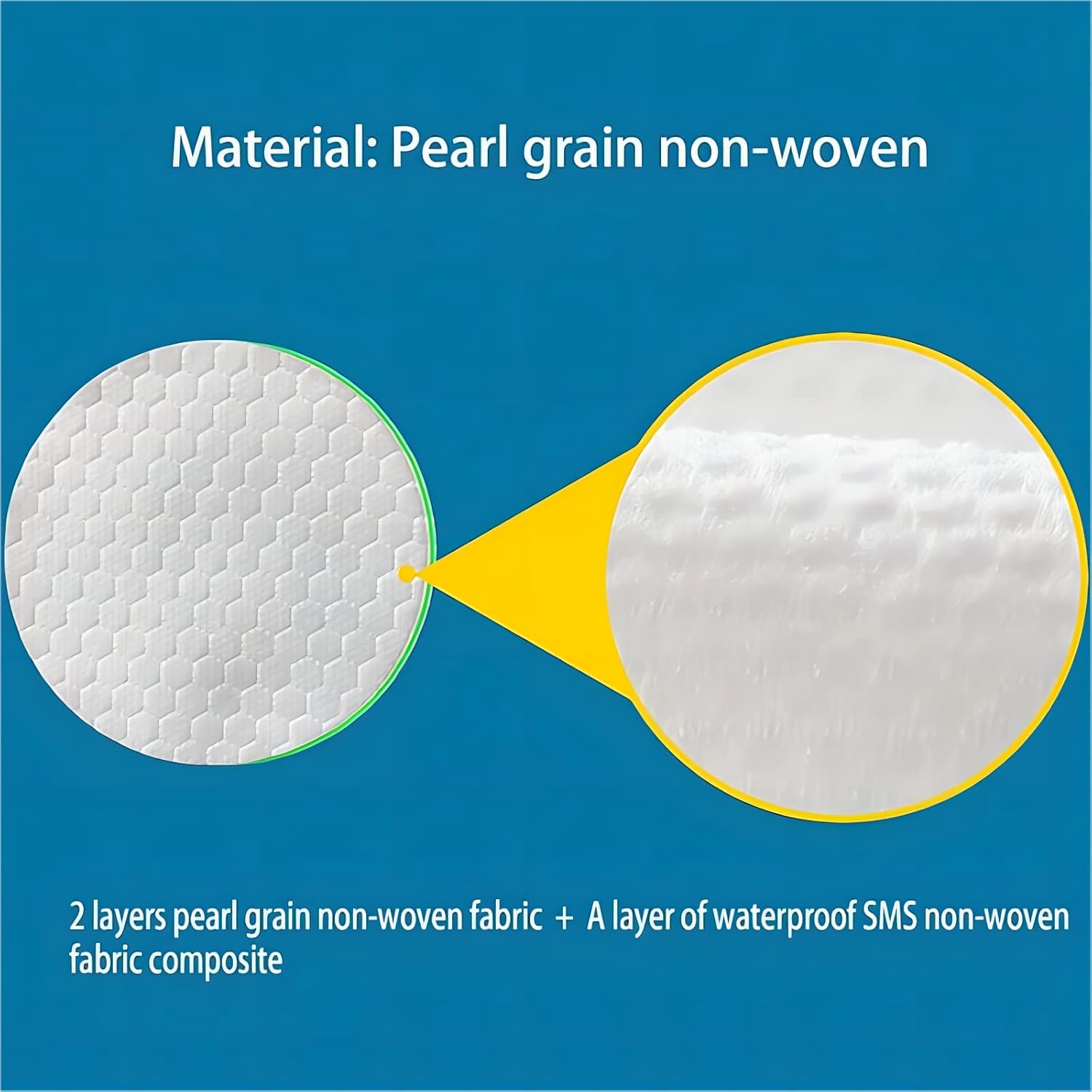 【Product Specifications】:Cloth diameter: 16cm (6.4in), 2 layers of pearl non-woven fabric + a layer of water repellent SMS non-woven composite, with water absorption, water locking, water insulation effect