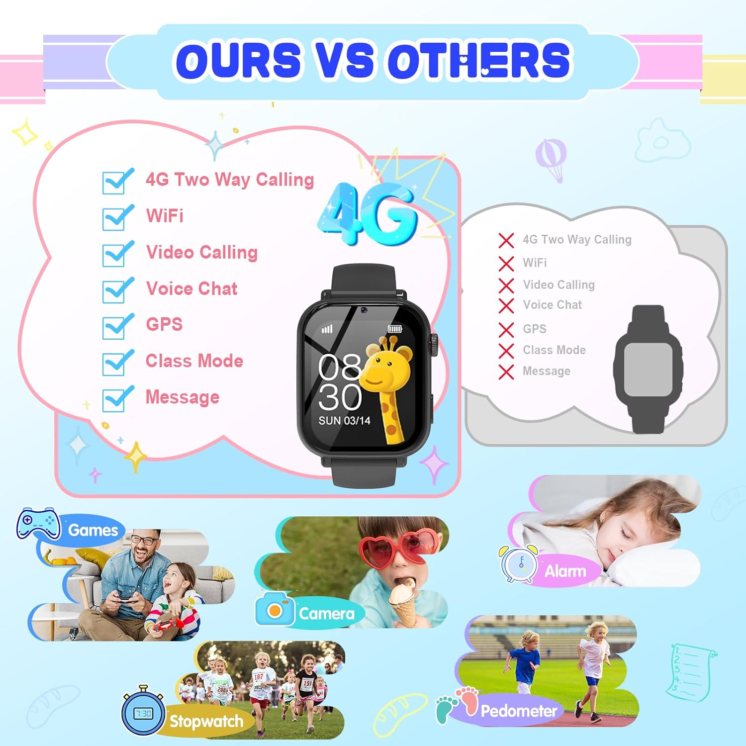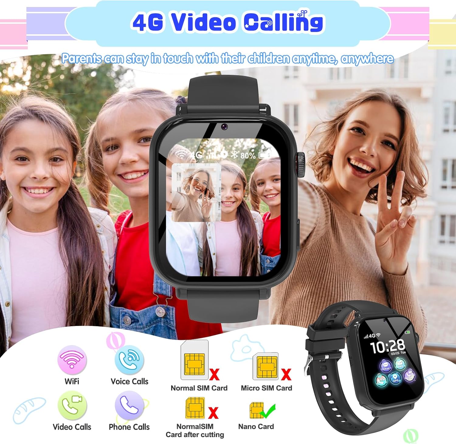Ucani 4G Kids Smart Watch Boys Girls, Kid GPS Tracker Watch Phone Video Call Wifi Position School Mode Pedometer SOS Games,Birthday Toy Gifts for 6-15 Years Old,Black