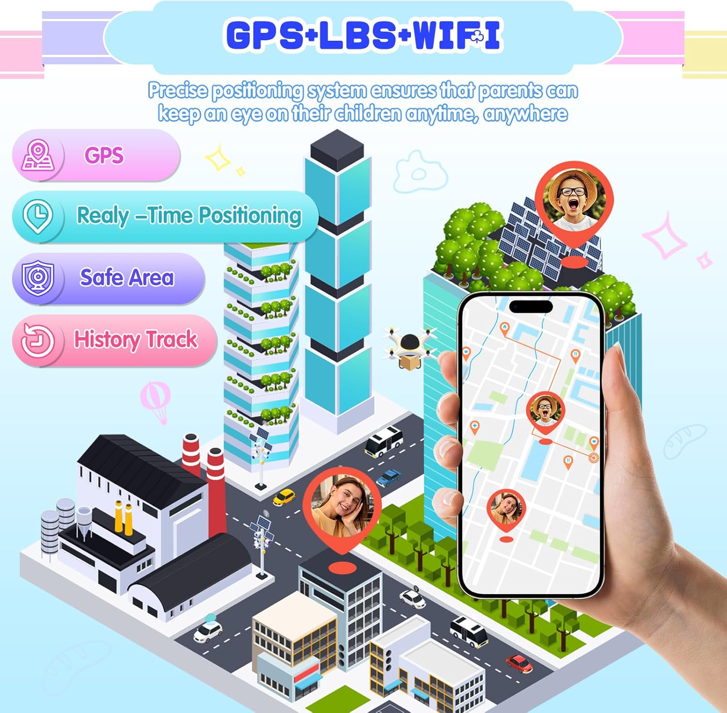 Kids Smart Watch with GPS Tracker:Smart Watch for Kids are equipped with GPS and LBS dual positioning functions to achieve real-time and accurate positioning. Parents can set up electronic fences and immediately alarm when their children cross the safe area; support viewing of all-day track history, so you can know the location of your child’s track at any time and keep track of your child’s whereabouts at any time