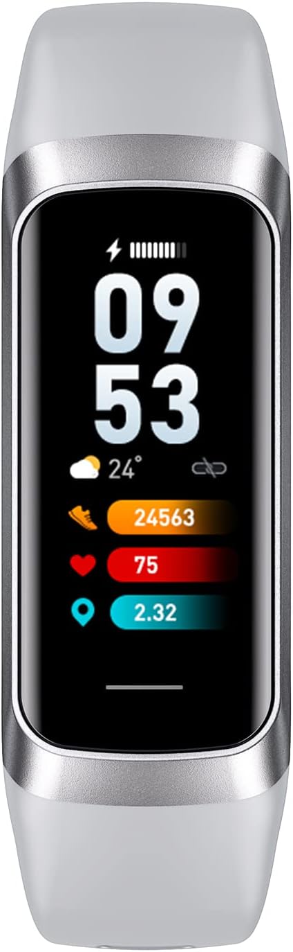 UMEGET Fitness Tracker,1.1 Inch Color AMOLED Screen Smart Watch,25 Sports Modes Heart Rate Sleep Tracker,7 Working Days,Magnet Charging,Thermistor Sensor Bracelet (Gray)