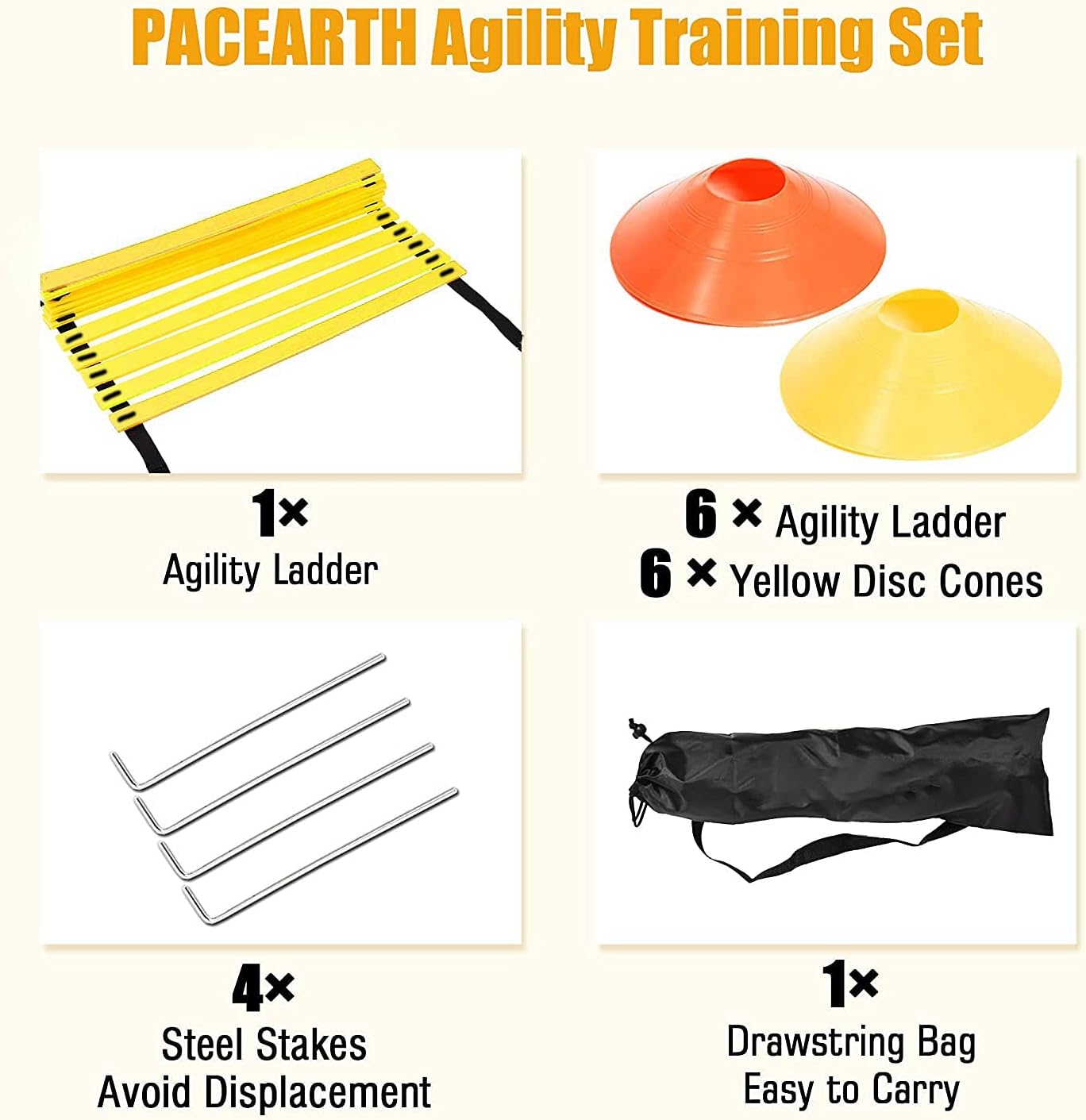 Yuuinnter Sports Speed Agility Training Set 12 Disc Cones 4 Steel Stakes and Agility Ladder for Football Basketball Rugby Track