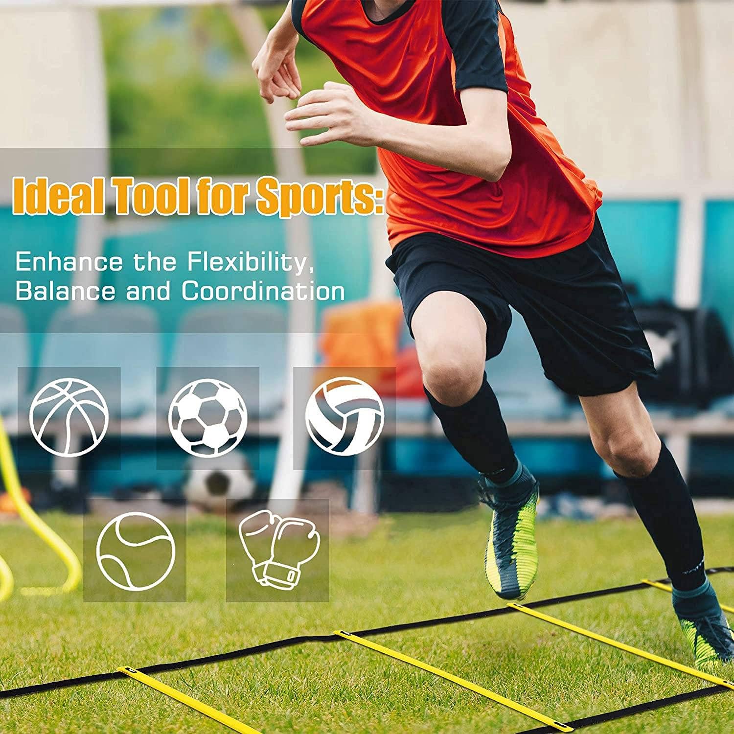 [Perfect tool for exercise] Agility ladder is the main tool for footwork practice. It is very helpful for many sports that require fast movement, such as basketball, football, softball, volleyball, tennis, free fighting, boxing, etc. The agility ladder can improve the ability to move quickly, enhance the flexibility, balance and coordination of the body.